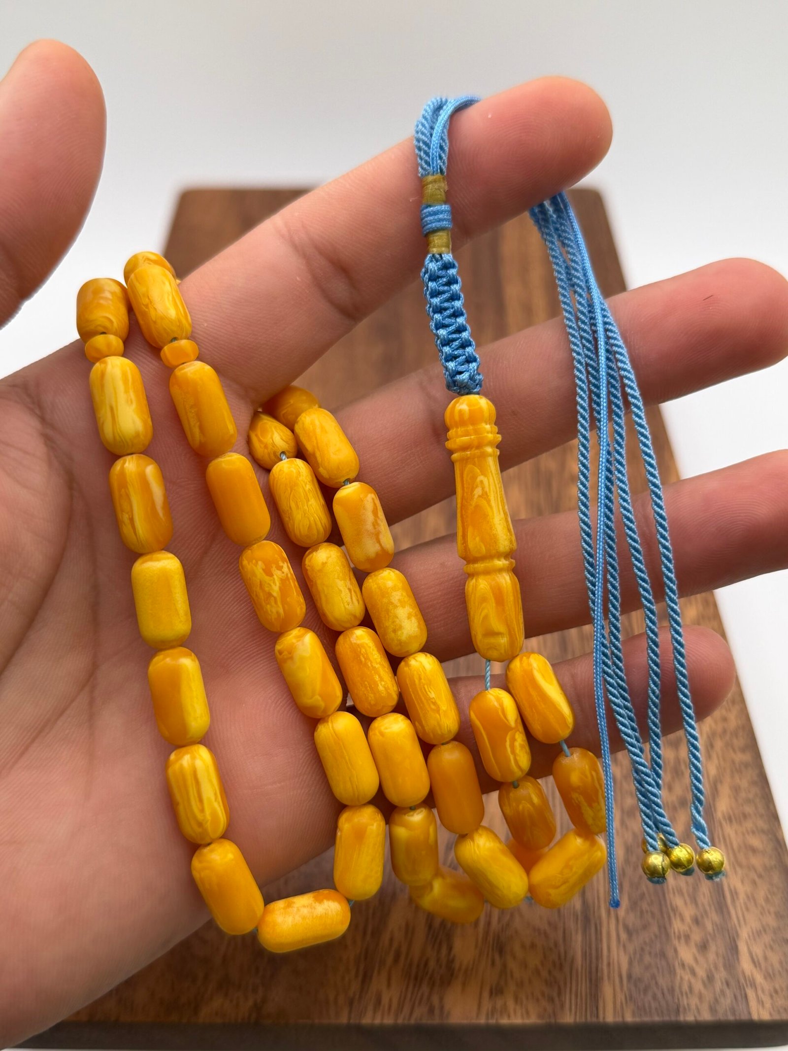 يتميز بتصميم جذاب ورائحة فوااحه وانيق ملمس المسباح ناعم ومعجن وذو حياكة فاخرة الشكة تفصال يدوي مما يعطي السبحة جمال وفخامة يصلح للاستخدام اليومي أو الاهداء.