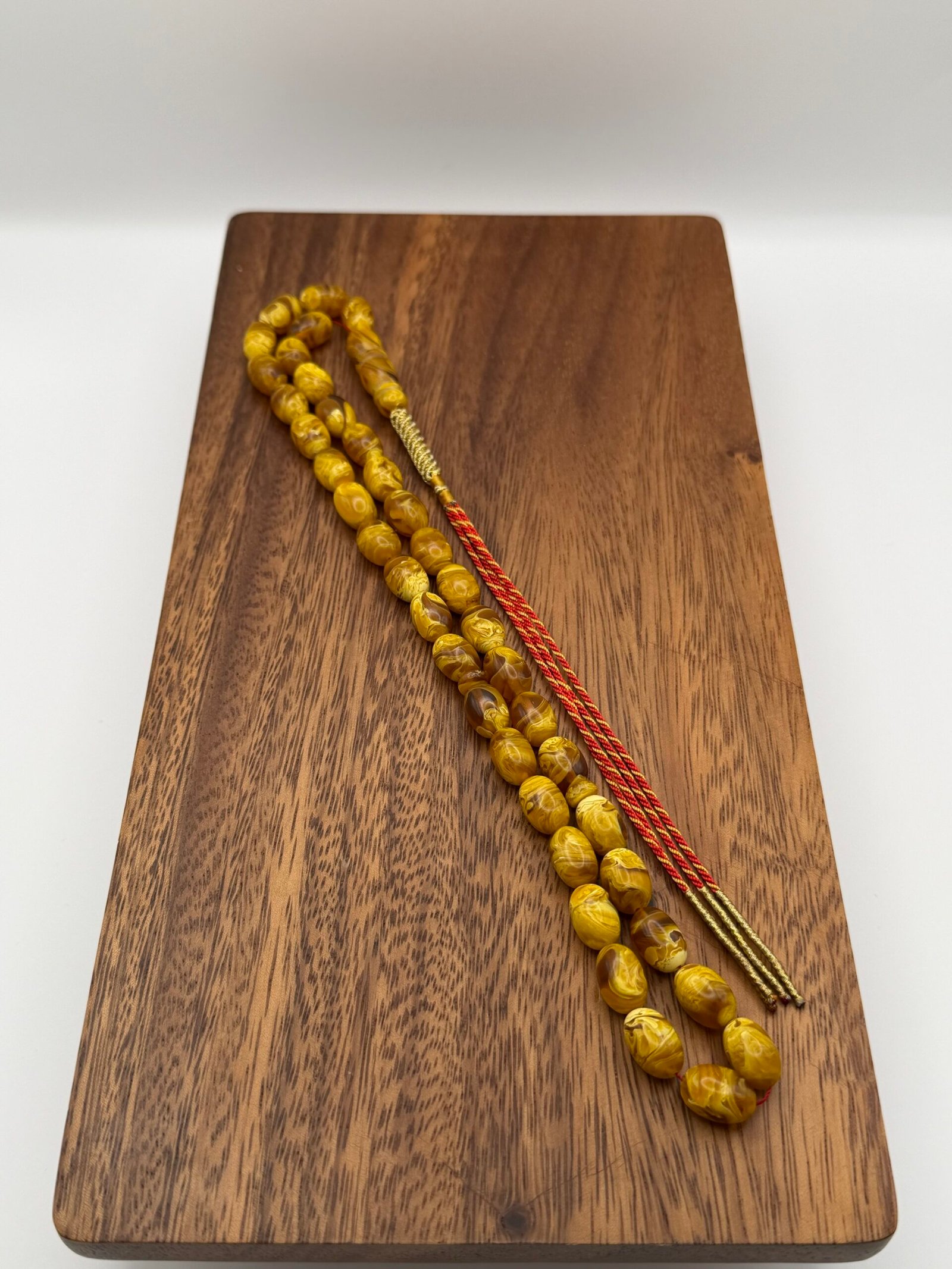 يتميز بتصميم جذاب ورائحة فوااحه وانيق ملمس المسباح ناعم ومعجن وذو حياكة فاخرة الشكة تفصال يدوي مما يعطي السبحة جمال وفخامة يصلح للاستخدام اليومي أو الاهداء.