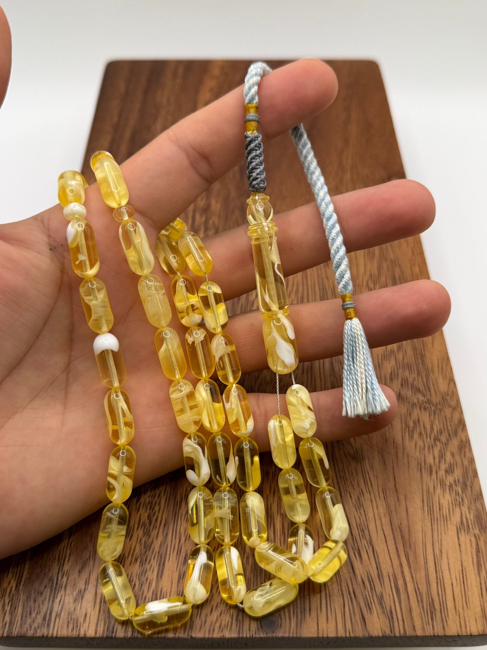 مسباح مستكه شبيه الكهرمان عسلي ملطخ